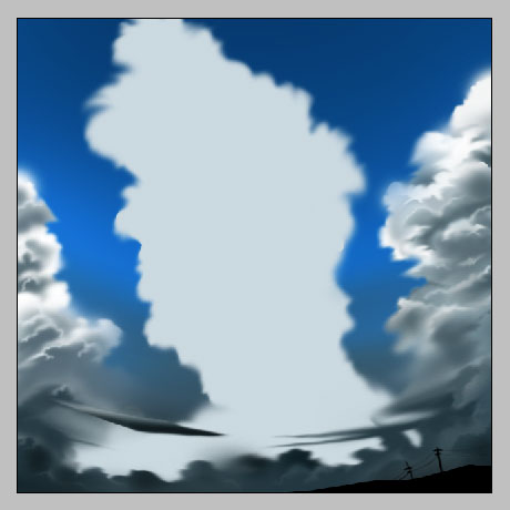 ジェミニを描こうとした→テキサスの荒野と青空ってかっこいいよね!→あれ? 雲が難しいな→ちょっと練習しようか→入道雲〜♪→そういやゲリラ豪雨って怖いよねー→ゲリラ豪雨ってあれだべ? 急に真っ黒な雲が出てきたらヤバいんだべ?